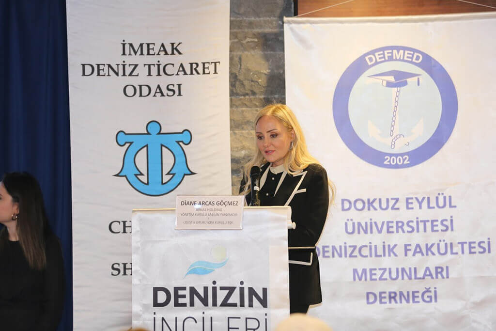 Denizin İncileri 2020 , Dokuz Eylül Üniversitesi Denizcilik Fakültesi Mezunları Derneği (DEFMED) ve İMEAK Deniz Ticaret Odası İzmir Şubesi işbirliğinde gerçekleştirildi. Dünya Kadınlar Günü dolayısıyla bu yıl ikincisi düzenlenen etkinlikte “Kadın ve Deniz” paneli ile BİMCO Başkanı ve İMEAK Deniz Ticaret Odası Yönetim Kurulu Başkan Yardımcısı Şadan Kaptanoğlu ile Arkas Holding Yönetim Kurulu Başkan Yardımcısı ve Lojistik Grubu İcra Kurulu Başkanı Diane Arcas Göçmez konuşma yaptı.